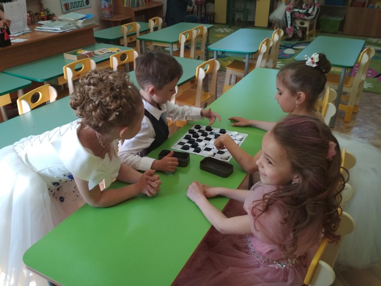 Поздравляю с выпускным! Ты прекрасна на фото, мужчины твои тоже!!! В шашки в дс их учат? Платья у пары девочек... Наверное, я отстала от моды)