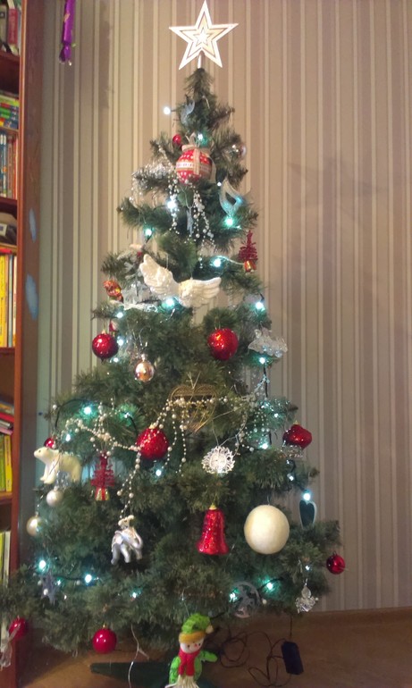Вот ёлочку сегодня нарядили наконец. Хотела детям праздничное настроение создать, а в итоге после разбитой игрушки на первых же минутах мероприятия, всех разогнала и нарядила сама. Вообще надо было дать им нарядить как они хотят, а потом перенарядить по своему. ))))