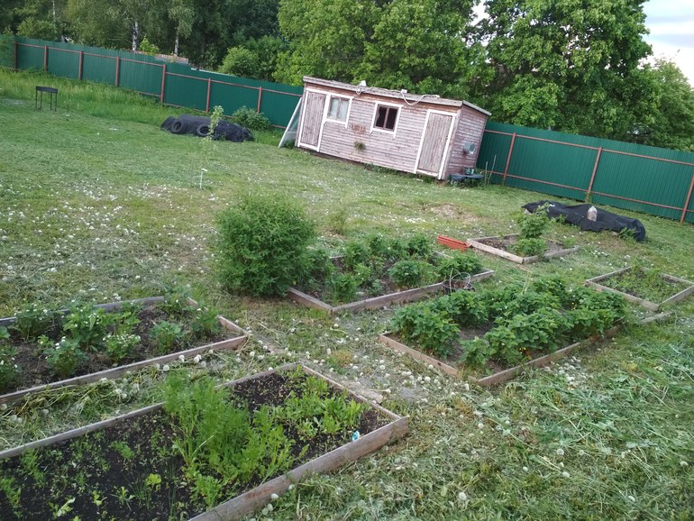 Садоводы из нас не очень. Бываем раз в 2 недели в среднем и, надеемся что оно все само вырастет. 6 грядок для меня предел)))