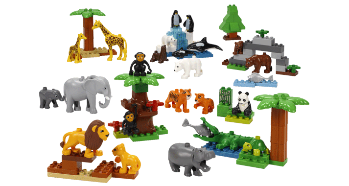 Дошкольное образование Lego EducationС помощью этого набора дети могут узнать, как живут различные животные, где они обитают, построить соответствующие жилища для них, воссоздать ландшафт. Набор состоит из 98 элементов, а также, пяти вариантов ландшафтов: Северная Америка, саванна, джунгли, Северный Ледовитый океан и река. Обратите внимание на крокодила и бегемота: их пасти открываются и закрываются! 23 фигурки животных + пластиковый короб Возраст: 2+ Количество: 98 элементов Цена:5050 руб.