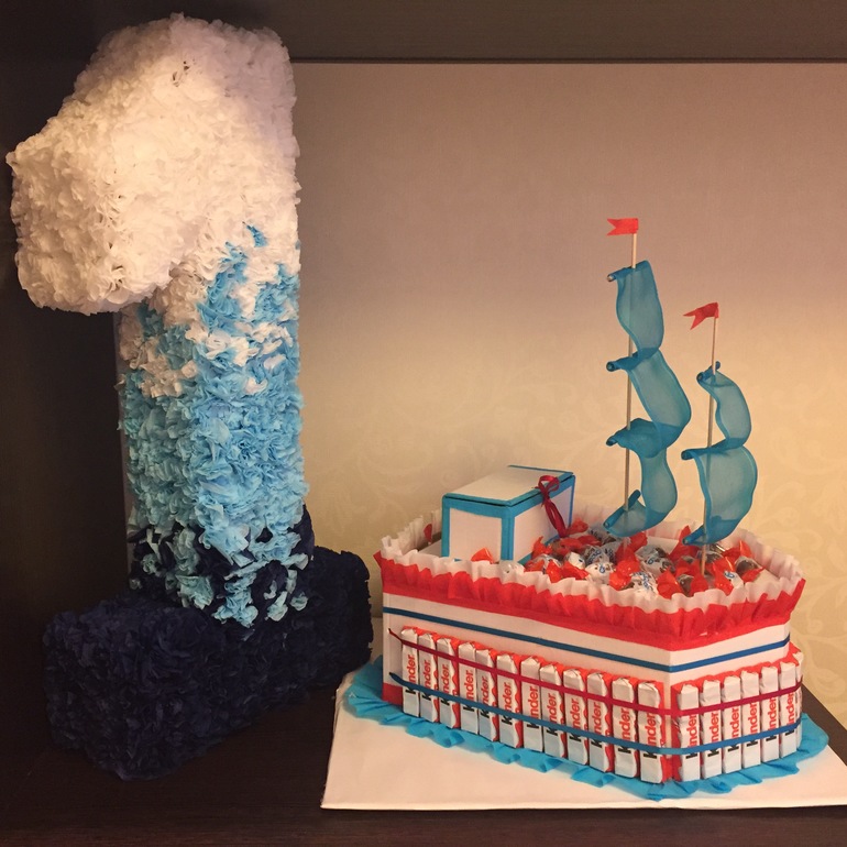 Корабль из киндеров сделала моя подруга! Он был просто невозможно классным!!! Дети были в восторге!