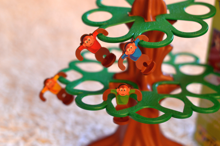 Настольная семейная игра "Прыгающие обезьянки"Количество игроков 2-4человека. Задача с помощью катапульты закинуть обезьян на дерево чтобы они зацепились. Поначалу мне думалось что это просто нереально, обезьяны постоянно падали.Потом принаравились, играем всей семьей с дочкой 2,5 лет