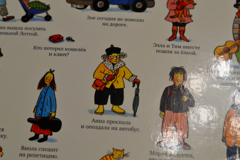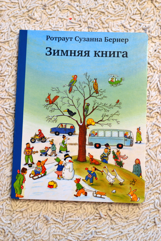 Зимняя книгаНаверное данная серия уже всем известна, но я все не решалась ее приобрести из за цены. На пробу было решено взять первую книгу. Первое впечатление-книга огромная, свя из плотного картона,картинки своеобразные(имеют свой стиль), много деталей, сюжетов и жизни. Начали разглядывать.Сначала просто смотрели картинки пока не захлопнули книгу и не увидели с другой стороны героев и их истории, мне кажется знакомство с героями должно быть на первой странице, а не на обороте, короче увидели мы их совершенно случайно и только после этого книга для нас по настоящему раскрылась, когда мы просто смотрели картинки мы не замечали сюжетных линий, героев и что с ними происходит, но посмотрев на героя и узнв о нем немного информации начинаешь следить за ним на каждой странице, например Анна опоздала на автобус и на каждой странице она за ним бежит. Теперь я абсолютно не жалею о ее покупке, однозначно скуплю всю серию!