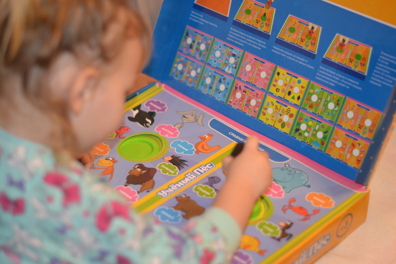 Одна из наших любимых игрушек Рамка-вкладыш "Что за дверью?", играем с 1 года. Сначала просто было интересно дверки открывать и все вытаскивать, потом научилась раскладывать все по своим местам. Игрушка является аналогом более дорогой магнитной доска с окошками "Прятать и искать", Melissa & Doug , но в отличии от нее по отличной цене и качество тоже приличное.Игрушка не только занимательная, но и обучающая. Мы играем по разному: иногда я умышленно перепутываю содержимое дверей и предлагаю дочке разложить все правильно, иногда вытаскиваем всех и прячем за нужной дверцей или прячу одну из вставок и предлагаю ей найти куда спряталась например корова. Покупкой очень довольна!Рекомендую![]()