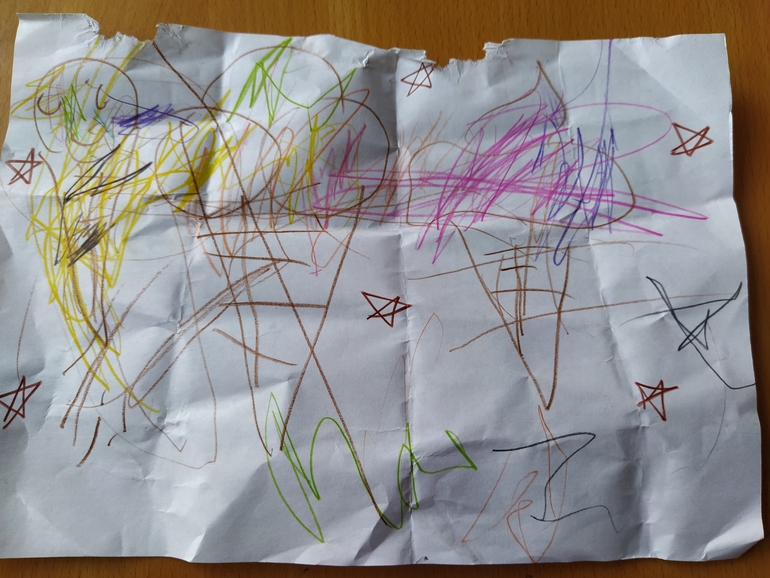 Знаете почему рисунки такие немного мятые? Они как были нарисованы сразу отправились в запасы продовольствия в космический корабль. Я даже сфотографировать не успела.