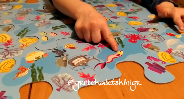Ну и вечером немного поиграли в Коралловый риф, я о ней писала отзыв в сообществе настольных игр и провели тест драйв новой игры. Тест драйв провалился. Сделала я все хорошо. Компоненты отличные, но я намудрила немного с основной картинкойи оказывается если поворачивать карточки, вторая картинка не собралась. Играть не переворачивая можно конечно, но буду переделывать.