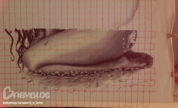 Мои успехи за месяц. Работа идет очень медленно, но каждый вечер я спешу к моему станочку :-))) Уже видна коленка.