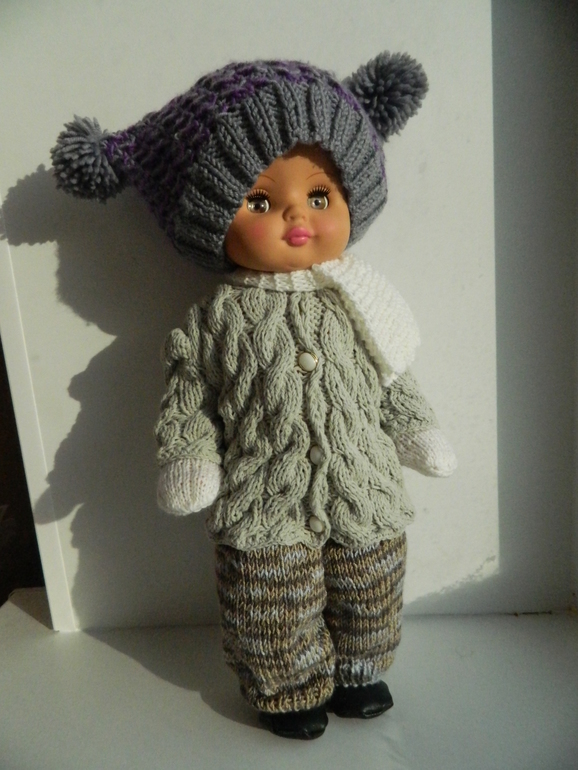 ВязаниеПопросили "укомплектовать" куклу определенной одеждой. Шапку я вязала еще пару лет назад для дочки, но она как-то все у нее в игрушках лежала, ладно хоть пригодилась. У куклы прическа кучерявая - как раз шапка на ней хорошо держится)) Остальное - из того, что было в остатках пряжи. Ботиночки - кожзам, пару отрезков лежало. Под ними еще белые носочки не видно)