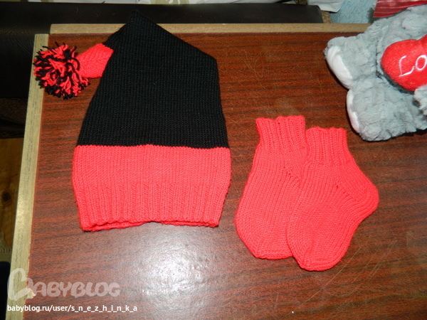 Вязала спицами :) это моя вторая работа ими :) 100% микрофибра :) делала все по стандартам годовалого ребенка, найденным в интернете )) Через час сегодня вручу, это сюрприз )))))