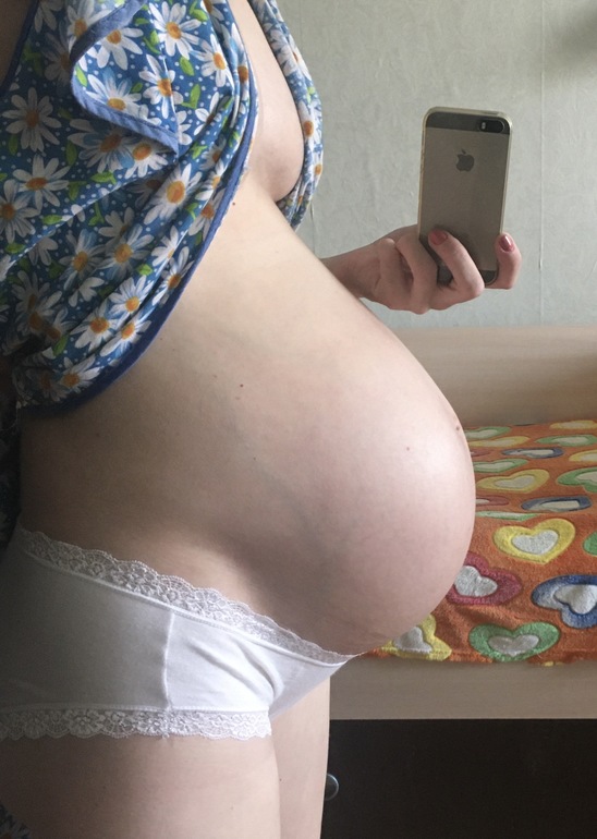 Теперь мне кажется, что с каждым днем живот все тяжелее больше, но в зеркале и на фото не могу этого разглядеть)) Пуз также низко. Сынок, видимо, там иногда пытается выгнуться и выпрямиться... тааааак, что в промежности становится очень больно. Прям искры из глаз и мгновенные страхи, что произойдет раскрытие, слетит пессарий и т.д.