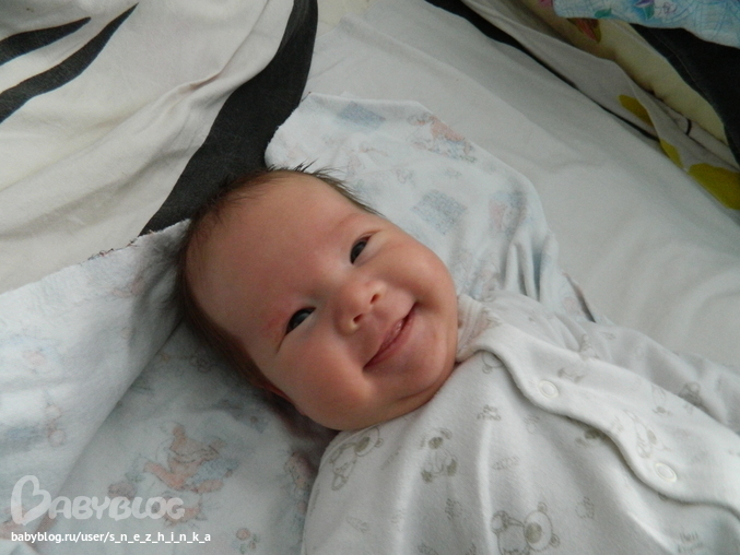 =)) у нас почти постоянно улыбается, когда не спит :) очень хотела, чтобы ребенок у меня был жизнерадостным :)) пусть так и останется :)