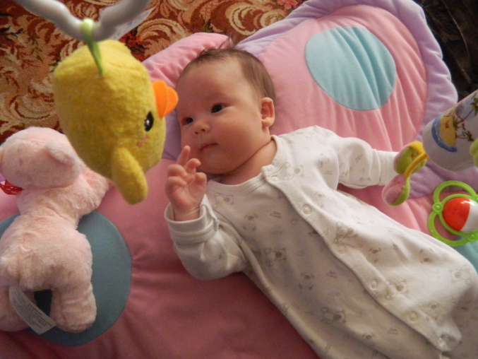 Любим коврик развивающий! Тянемся к игрушечкам и разговариваем с ними ))
