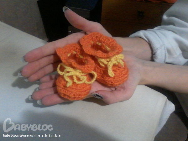 крючком? такие оранжевенькие, позитивные :) для маленькой апельсинки!