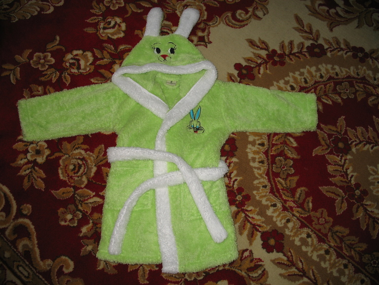 Продам халат размер 3-4 (зеленый: длина по спинке 55 см), б/у мало, в идеале. Цена: 250 руб.