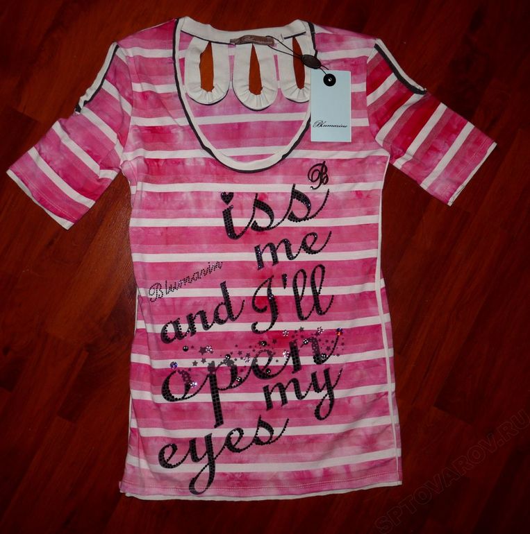 3. Футболка Blumarine. Размер S. На рукавах вырез как на спине. Состав:95% вискоза, 5% эластан. Длина по спине - 64 см. Цена: 1000 руб.