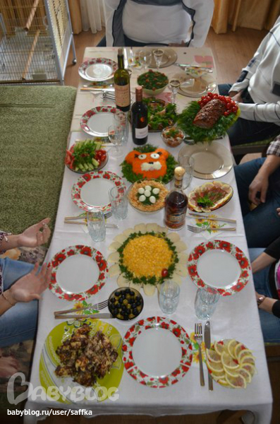 вау))умница))у тя еще и время было все приготовить так красиво)))а что за мишка там в центре салат??