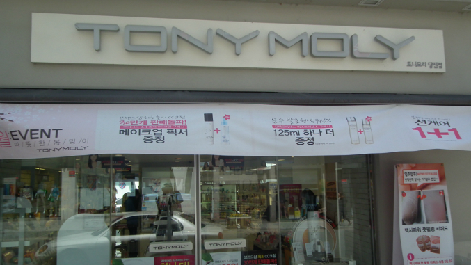там эти магазины все на одной линии: Тони, Иннисфрии, Мишша, Скинфуд, Этюд, ФейсШоп.