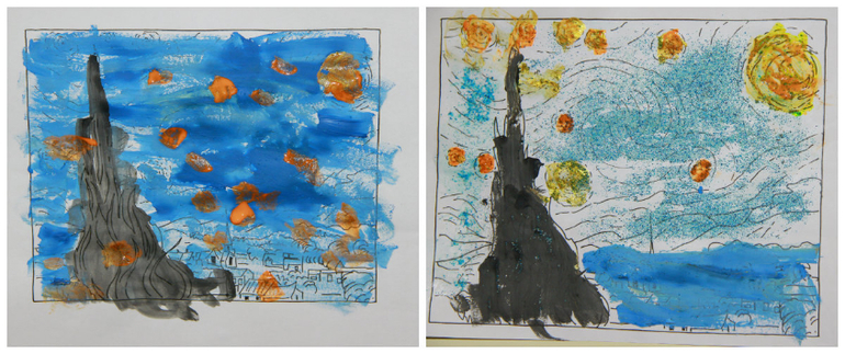 не смотря ни на что Маша очень поняла темы подсолнухи и звезды. я очень довольна результатом и очень рада что познакомила Машу с творчеством Ван Гога