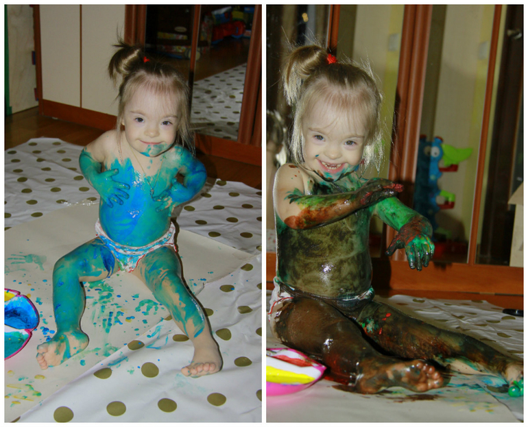 Но когда я буквально через неделю дала краски для бодиарта, я поняла, что все таки зажгла ту искру, и Маша за считанные минуты превратилась голубое нежное создание. а затем Она мазалась и мазалась. и из голубого нежного цветочка превратилась.... главное Маша Получала удовольствие от красок и от смешивания цветов. Смотреть было ну просто очень интересно, не знаю как кому, а мне нравится.