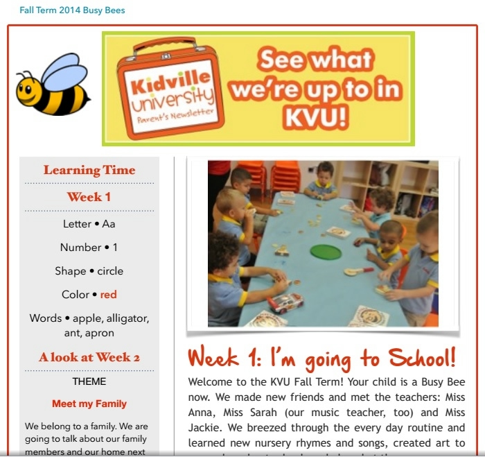 По e-mail получили короткий отчет с фото, чем занимались дети на этой неделе, и какая тема на следующей неделе.