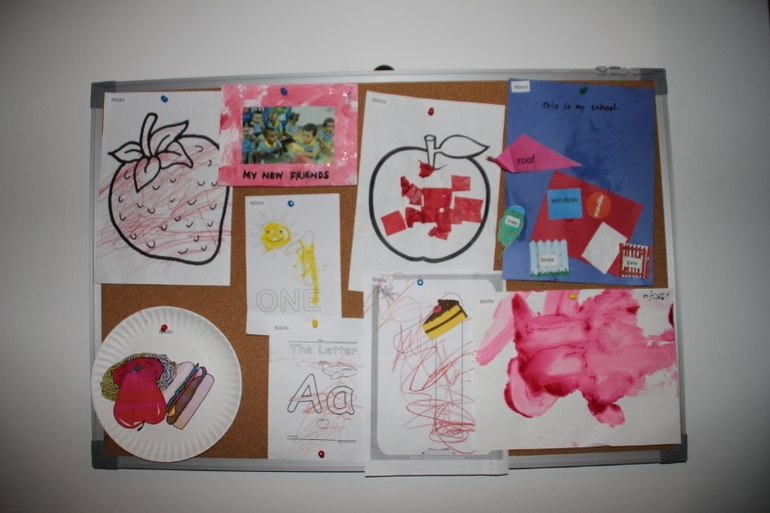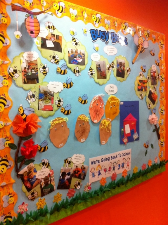Наша группа называется "Занятые пчелки", напротив висит плакат, куда периодически вывешивают фото, как проходят занятия.