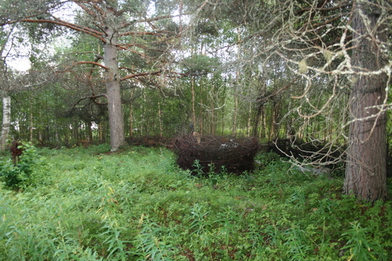 Это конечно Карелия. Но я была в Карелии и раньше, но не видела раньше такой природы. Это совершенная дичь. Согнутые и даже скрюченные деревья, озера с торчащими из них верхушками деревьев, белоснежный мох, создающий ощущение зимы. Огромные камни, непонятно откуда появившиеся среди леса. Короче, можно снимать фантастику. Или сказки. Мне все казалось, что где-то тут и есть тот самый дуб с котом. Тем более, прямо около нашего дома мы обнаружили вот такие странные вещицы: Гнездо 2 на 2 метра и дерево с метлами.