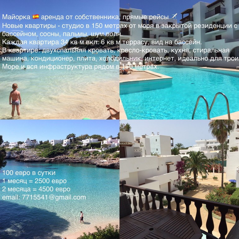 Сдам студио сентябрь, октябрь, ноябрь у моря, вся инфраструктура - пляж, море, магазины, рестораны, спа, детские площадки, итд в шаге, идеально для троих. Возвращаемый залог за сохранность 300 евро. Квартира новая, район один из самых лучших на Майорке. Дом зак...