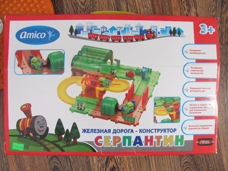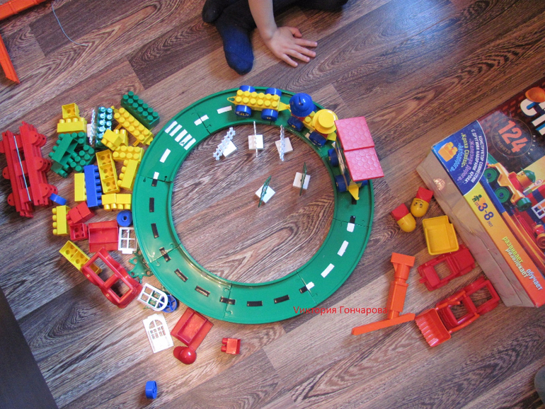 5. Кроха "Стройка". Привлекла именно дорога. Очень часто играли дорогой и краном с машинками. Ну и домики строили, нравились окошки. Железной дорогой почти не играли ,возможно потому-что ее мало в наборе, и поезда нет. Возрастной значок на упаковке 3-8, но мы игрались с ним до трех лет. Позже очень редко доставал.