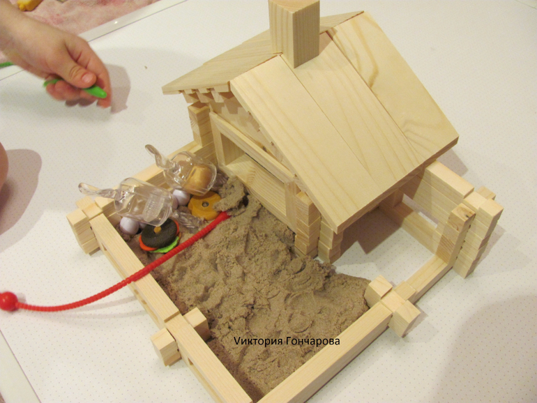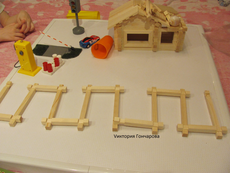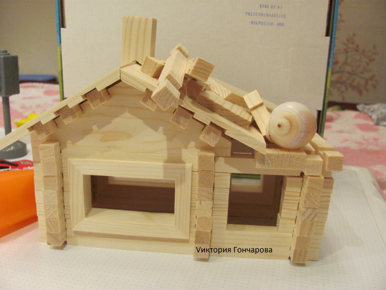 42. Деревянный конструктор "Лесовичок". Все нравится, кроме инструкции - в ней нет поэтапной сборки, только собранный дом и необходимые детали. Кстати было бы удобнее если бы детали были подписаны. Обычно строим дачу с огородом и заборами.
