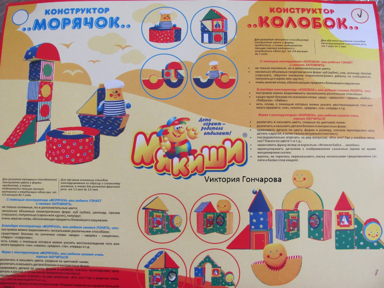 6. Конструктор "Колобок" фирмы "Мякиши". Не пользовался успехом у ребенка, хотя по мне так очень качественный и интересный - разные окошки, шуршалки и прочее.