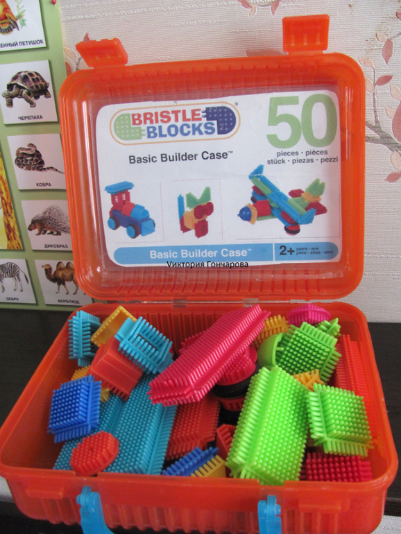 Не очень понравился, кирпичики небольшие, и инструкция не очень понятная. Хотя ребенок достает, правда собирает не по схеме.