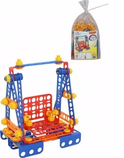 48. Конструктор "Изобретатель" Качели №1. Большой по размеру выходит, и детали крупные, но качество не понравилось, хотя фирма "Полесье". И при раскачивании качели, винтики снизу мешают, задевают за нижнюю часть.