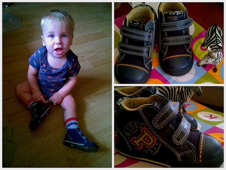 Марку сначала ботинки не понравились - снимал их постоянно. А сегодня уже топали за ручки с ним, веселился - как конячка научился ножку выкидывать - шагать. А то грёб ногами...