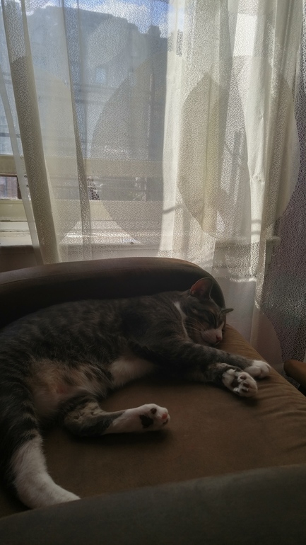 Облизал за мамой тарелку после тортика и спит довольный в своем кресле.