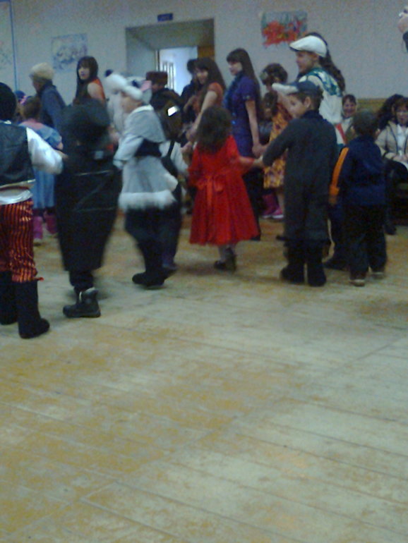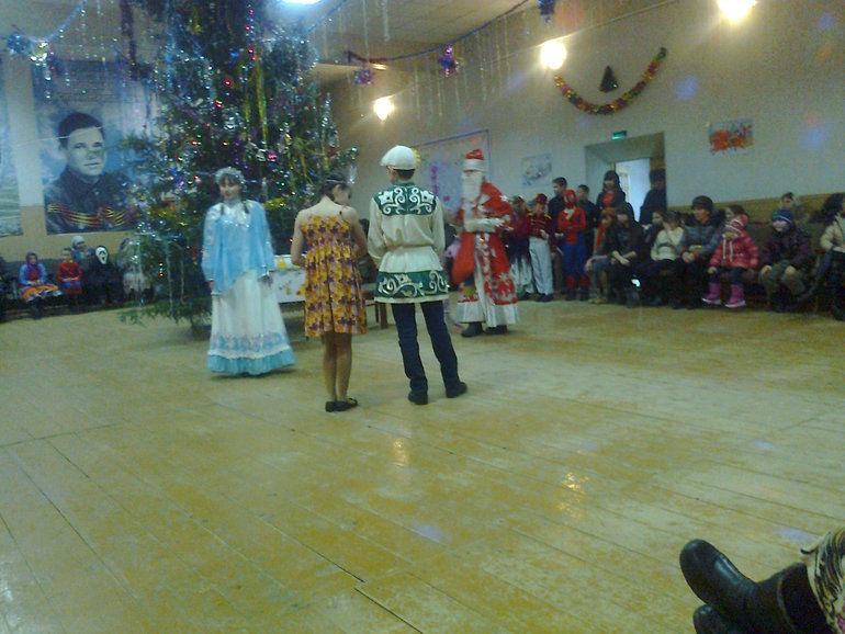 Вот и утренник для школьников прошел - правда прошел он не в школе, а в сельском клубе, т.к. в спортзале школы течет крыша, на стенах уже плесень от мокроты постоянной, и проводки искрят, опасно ждаже заходить на уроки физкультуры. А вот и наше фото: