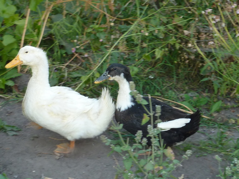 с июля в огороде.паслись, пока свекровь их не заперла запорчу помидор. но мы их пускали. реально в огороде попортили чуть, но сожрали всех муравьев - особенно кусачих в малине. слизней и рыхлили почву с мужем на пару
