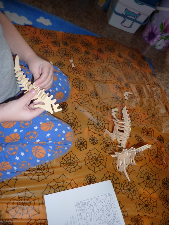 К сожалению при сборки сломалась ведущая тазовая часть:( будем пытаться заклеить..... Но Димка сказал ,что в настоящем музее бывают и части динозавров:)