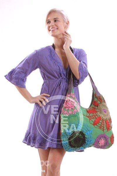 Сумочка из текстиля, украшенная вязаной крючком вставкой. Оригинальная, подойдет к образу стильной и современной женщины. Производство Италия