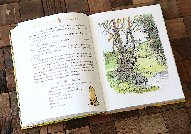 Однажды я уже писала рецензию на Милновского Винни-Пуха с иллюстрациями Шепарда, теми самыми, которые и послужили затем основой для создания мультика. Ту книгу, не самую удачную, надо сказать, мы благополучно потеряли. У той были ужасные рамки и виньетки.