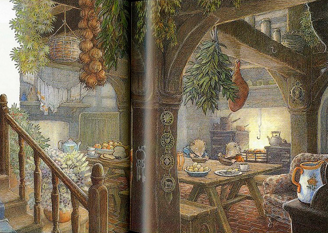 Они словно Виммельбухи удивительной красоты и проработки! Очень рекомендую вам найти его иллюстрации в хорошем разрешении и распечатать их детям!