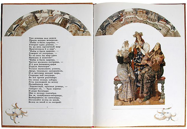 Только взгляните на эти богатые и выразительные иллюстрации, множество деталей, аутентичные костюмы, царскую стать и богатство костюмов, насыщенность в каждой детали! Геннадий Спирин покоряет меня своим мастерством вновь и вновь!