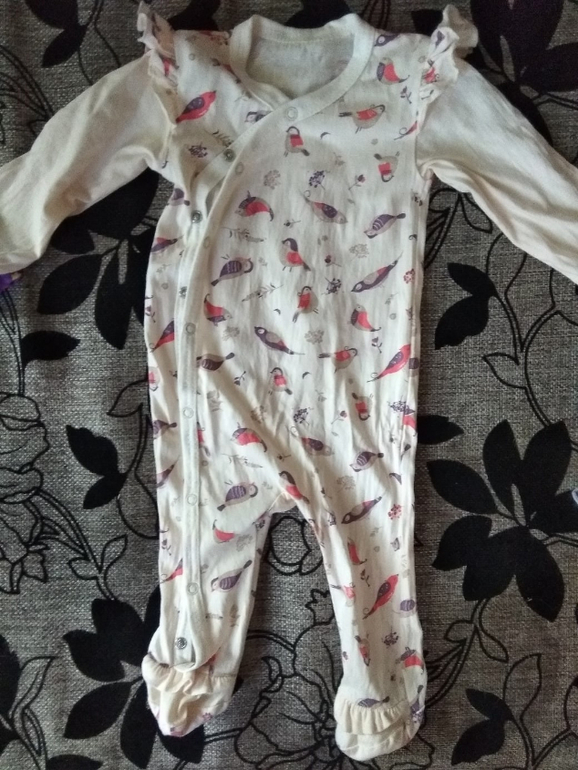 Кстати, все вещи нам достались в наследство, отдавали подруги и знакомые. И я наконец-то сама что-то купила только сейчас, так что не могу не похвастаться - 2 комбезика и чепец как в 18 веке (он такой, потому что легкий на лето с перфорацией само то - да и милота же))))