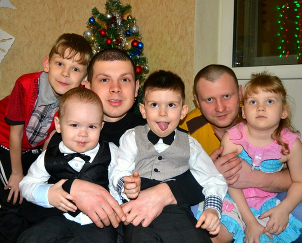 (с маминым мужчиной,как всегда планировали отмечать вместе,но мама почему то снова не пришла,зато пришел миша)он обожает лешку)))сережку тоже,но лешку больше))