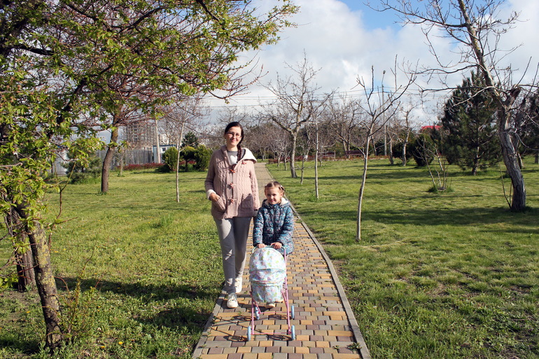 А это мамашка Вера в парке)теперь взялась тоже коляску свою катать) И к пузику моему подойдёт и нежно так :"Сынооочек!" Мы с Лёшей смеемся,что не "сыночек",а "братик")))Но она пока никак не осознает)Раз говорим мы сыночек,то и Вера повторяет)