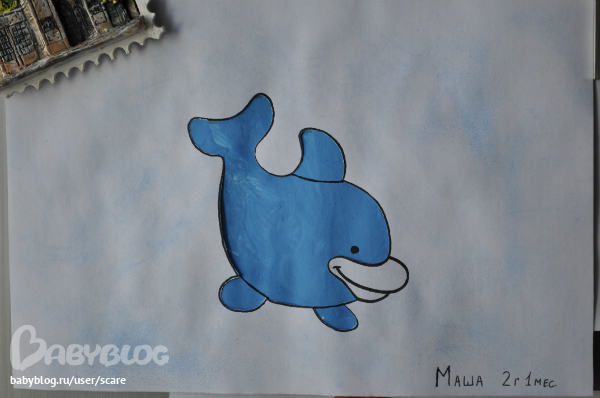 Морская звезда и дельфин к папиному ДР. Делаются так-распечатываем 2 картинки, одну даем раскрасить ребенку, а вторую вырезаем по контуру рисунка, склеиваем вместе )