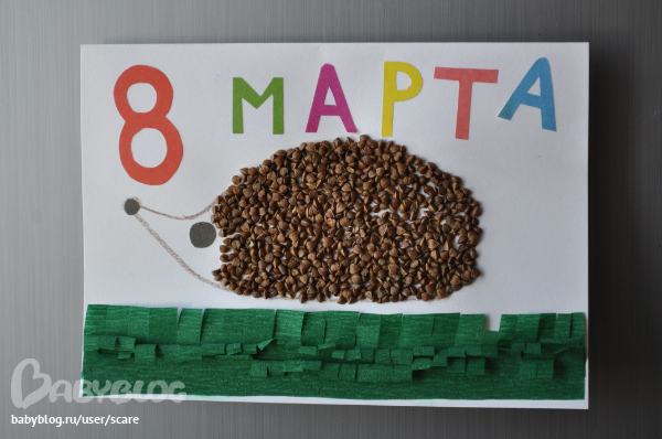 Подарки бабушкам к 8 марта. За идею с мимозой спасибо Вере ) (мы только не кукурузную крупу использовали, а пшено)
