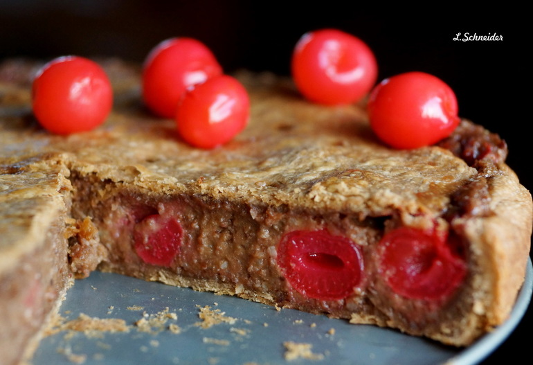 "Что такое вообще баскский пирог? Это закрытый пирог из песочного теста, ароматизированного ромом, с начинкой из заварного крема, миндаля и вишни в различных вариациях и сочетаниях.