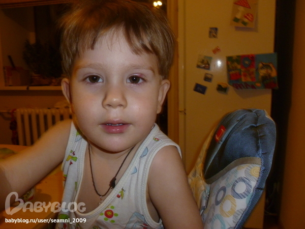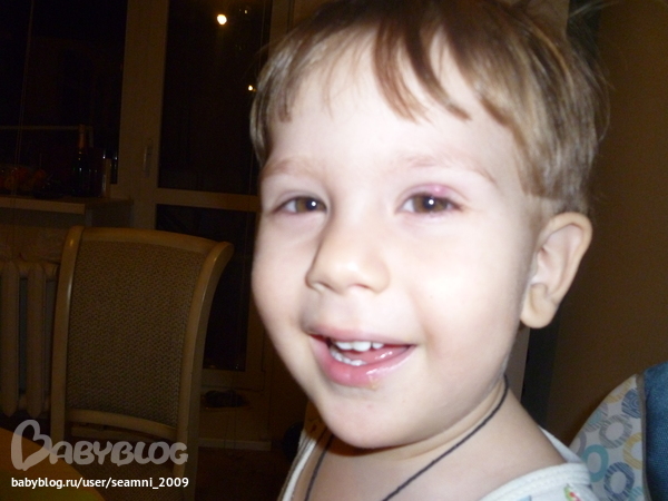 вот такая у Мишки "красивая" мордашка к праздничку(( как вам наш глазик?