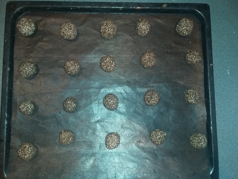 Скатать шарики размером с грецкий орех, разложить на противне: