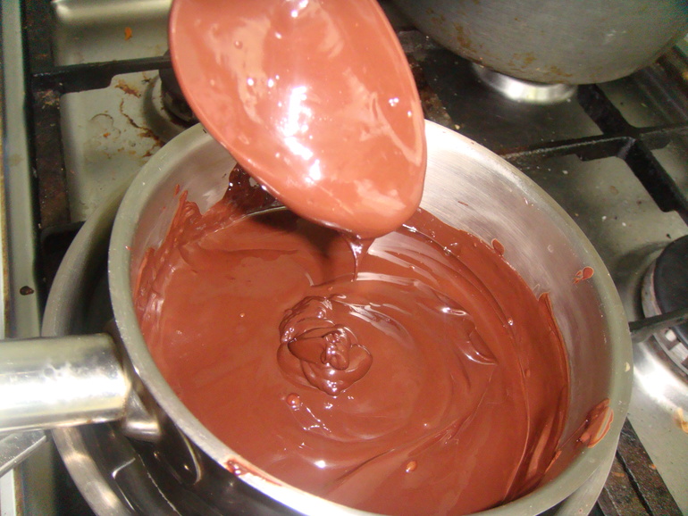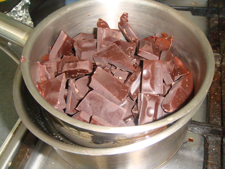 Шоколад (200 г) разломать и поставить на водяную баню:
